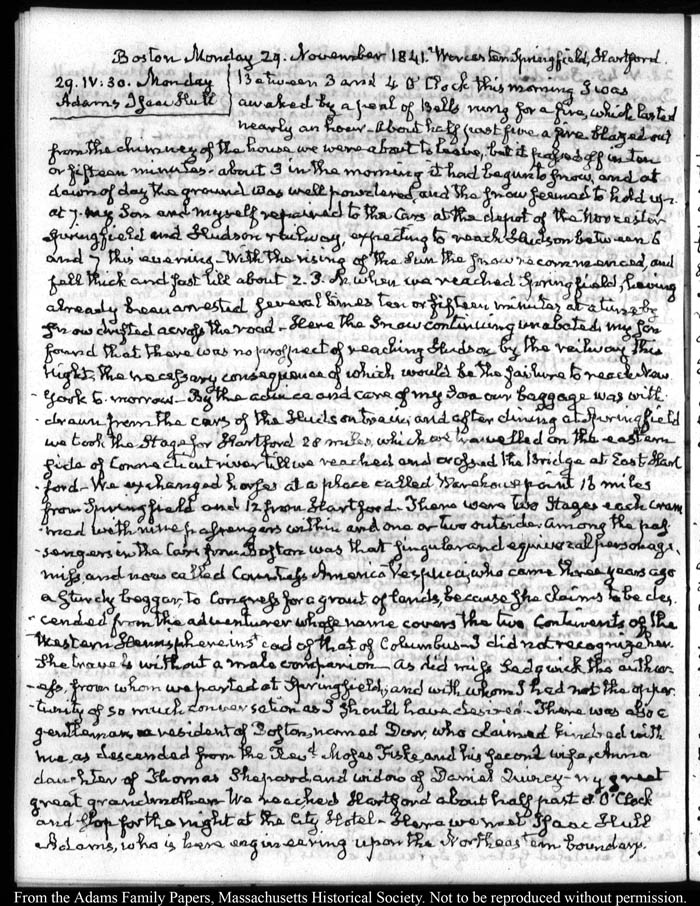 Boston. Monday 29 November 1841. Worcester Springfield Hartford