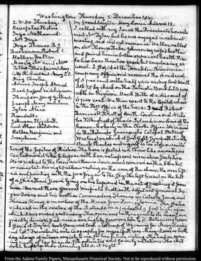 Washington. Thursday 2 December 1841.