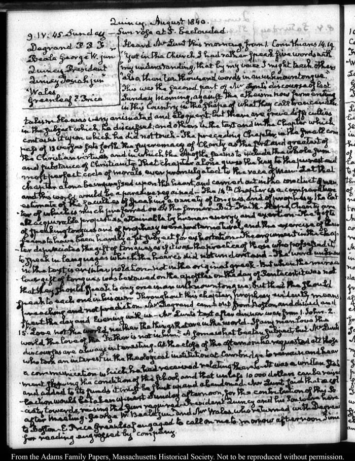 View full, authoritative transcriptions with page images of the diaries at John Quincy Adams Digital Diary part of the Primary Source Cooperative at the MHS.
