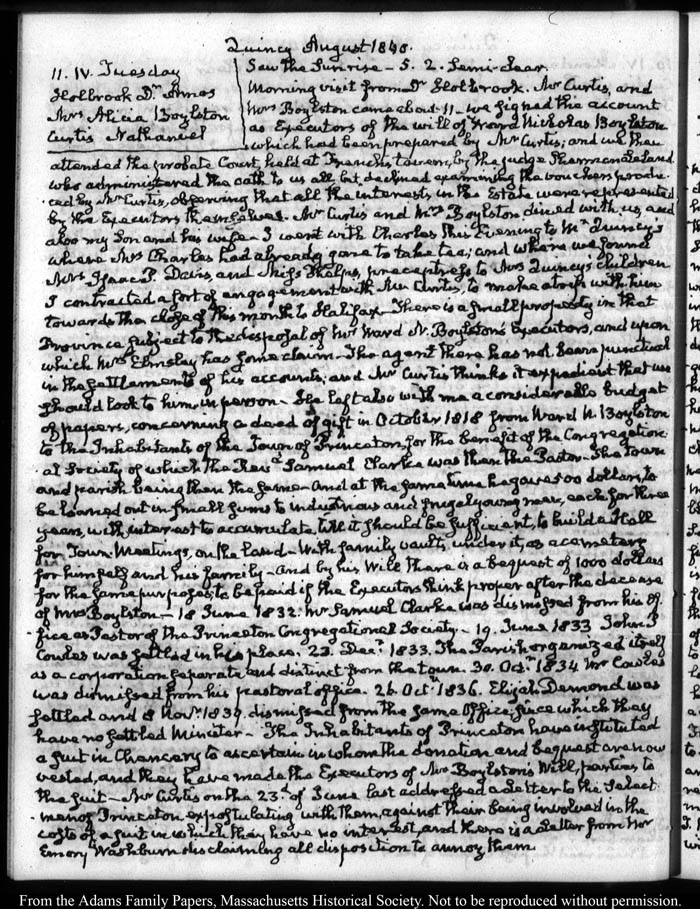 View full, authoritative transcriptions with page images of the diaries at John Quincy Adams Digital Diary part of the Primary Source Cooperative at the MHS.