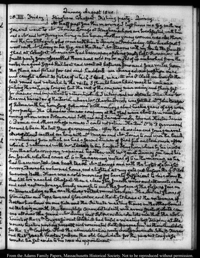 View full, authoritative transcriptions with page images of the diaries at John Quincy Adams Digital Diary part of the Primary Source Cooperative at the MHS.