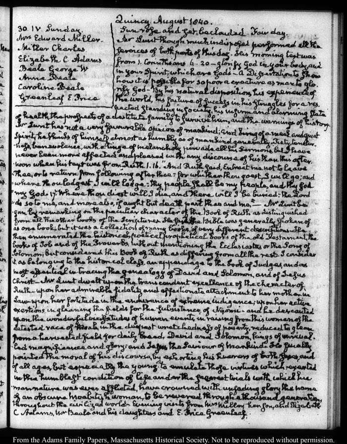 View full, authoritative transcriptions with page images of the diaries at John Quincy Adams Digital Diary part of the Primary Source Cooperative at the MHS.