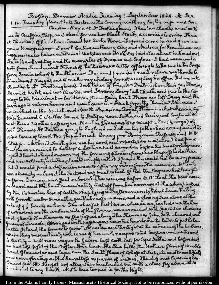 View full, authoritative transcriptions with page images of the diaries at John Quincy Adams Digital Diary part of the Primary Source Cooperative at the MHS.