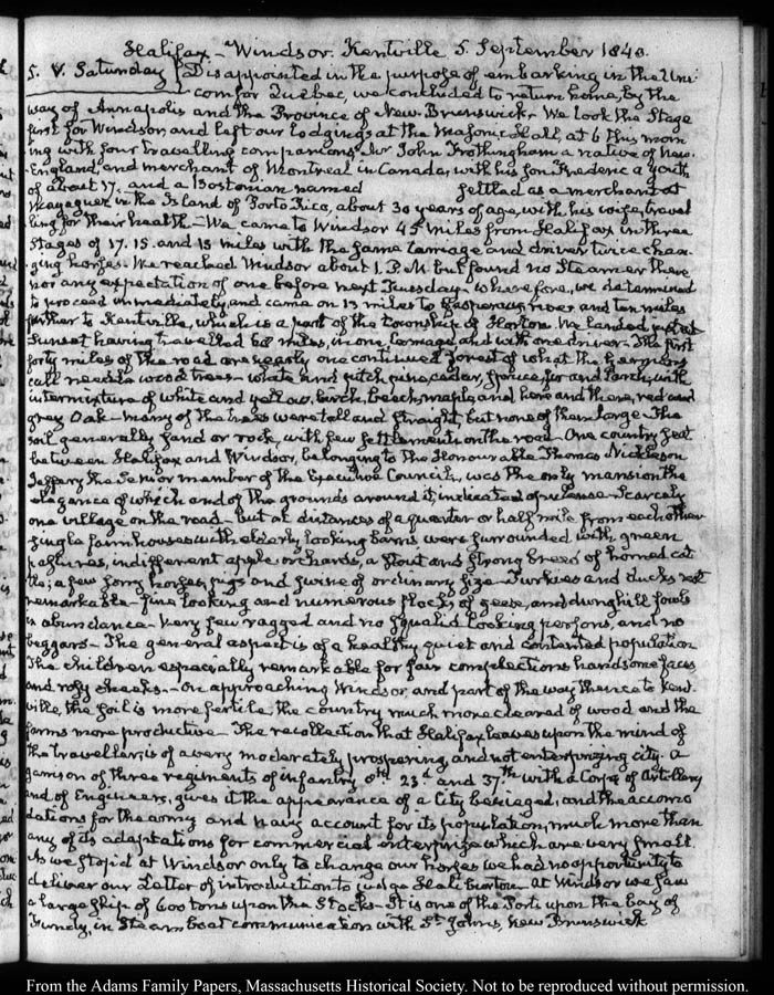 View full, authoritative transcriptions with page images of the diaries at John Quincy Adams Digital Diary part of the Primary Source Cooperative at the MHS.