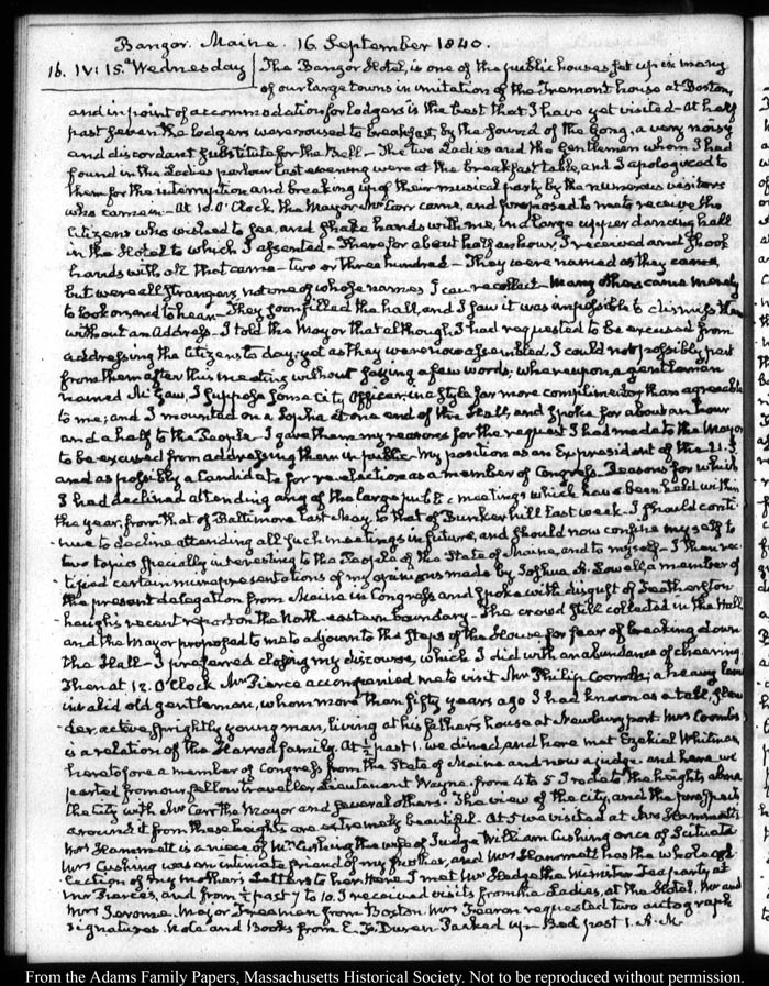 View full, authoritative transcriptions with page images of the diaries at John Quincy Adams Digital Diary part of the Primary Source Cooperative at the MHS.