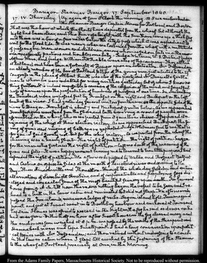 View full, authoritative transcriptions with page images of the diaries at John Quincy Adams Digital Diary part of the Primary Source Cooperative at the MHS.