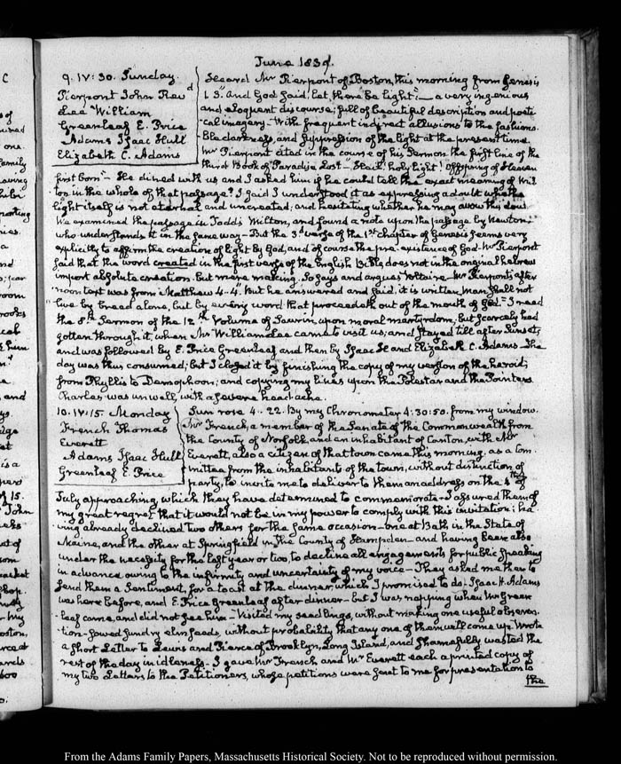 View full, authoritative transcriptions with page images of the diaries at John Quincy Adams Digital Diary part of the Primary Source Cooperative at the MHS.