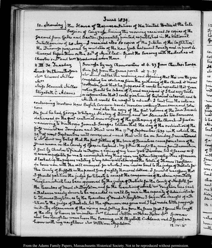 View full, authoritative transcriptions with page images of the diaries at John Quincy Adams Digital Diary part of the Primary Source Cooperative at the MHS.