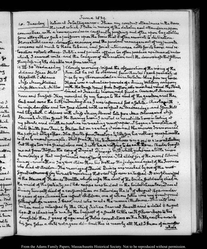 View full, authoritative transcriptions with page images of the diaries at John Quincy Adams Digital Diary part of the Primary Source Cooperative at the MHS.