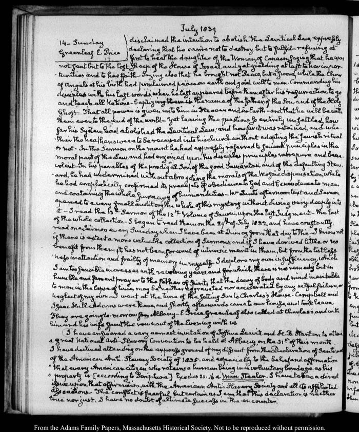 View full, authoritative transcriptions with page images of the diaries at John Quincy Adams Digital Diary part of the Primary Source Cooperative at the MHS.