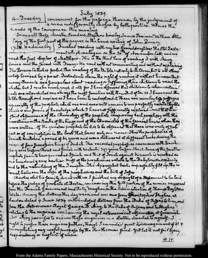 View full, authoritative transcriptions with page images of the diaries at John Quincy Adams Digital Diary part of the Primary Source Cooperative at the MHS.