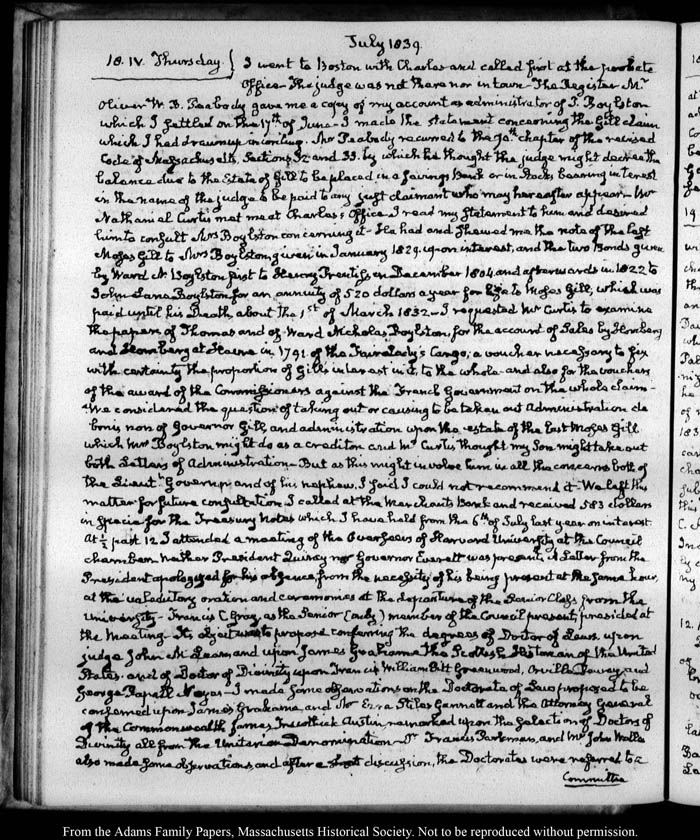 View full, authoritative transcriptions with page images of the diaries at John Quincy Adams Digital Diary part of the Primary Source Cooperative at the MHS.