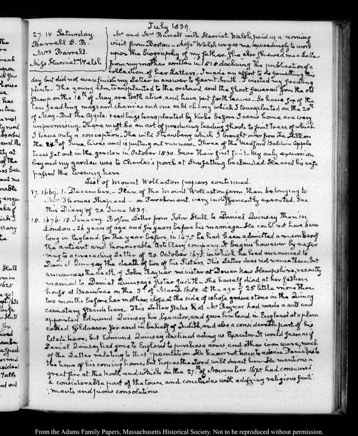 View full, authoritative transcriptions with page images of the diaries at John Quincy Adams Digital Diary part of the Primary Source Cooperative at the MHS.
