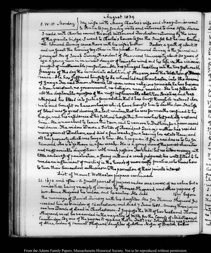 View full, authoritative transcriptions with page images of the diaries at John Quincy Adams Digital Diary part of the Primary Source Cooperative at the MHS.