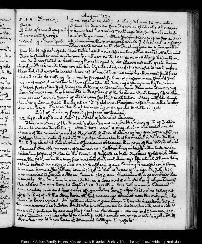 View full, authoritative transcriptions with page images of the diaries at John Quincy Adams Digital Diary part of the Primary Source Cooperative at the MHS.