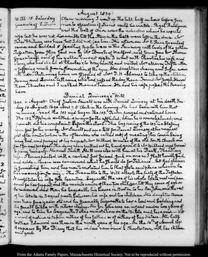 View full, authoritative transcriptions with page images of the diaries at John Quincy Adams Digital Diary part of the Primary Source Cooperative at the MHS.