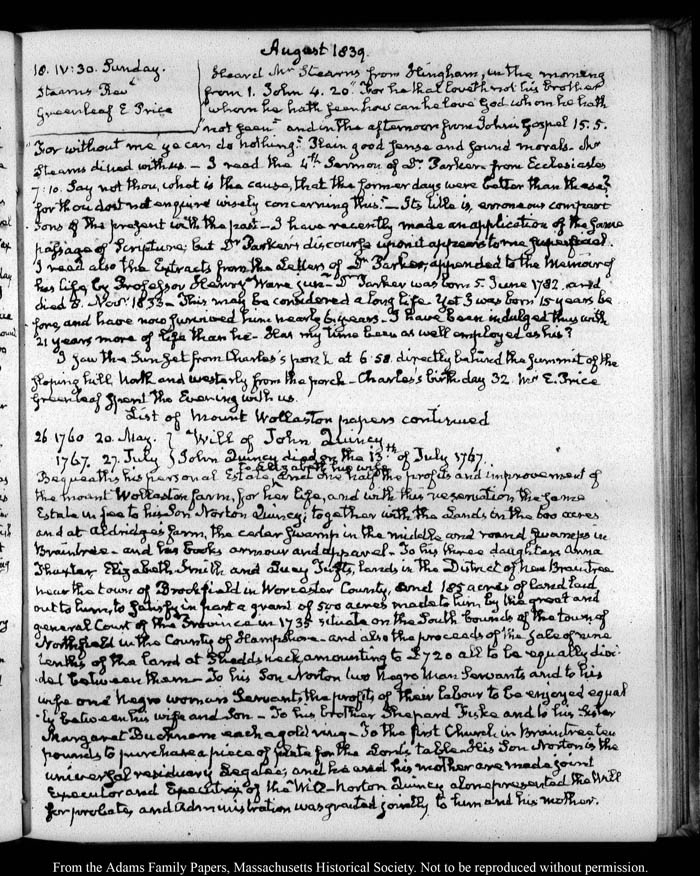 View full, authoritative transcriptions with page images of the diaries at John Quincy Adams Digital Diary part of the Primary Source Cooperative at the MHS.