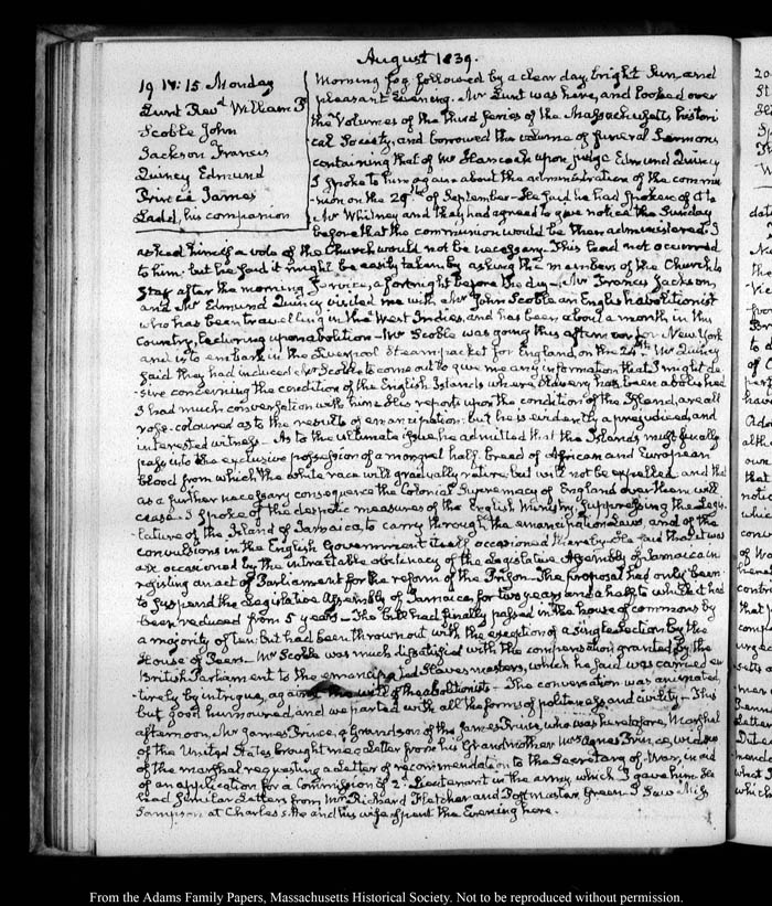 View full, authoritative transcriptions with page images of the diaries at John Quincy Adams Digital Diary part of the Primary Source Cooperative at the MHS.