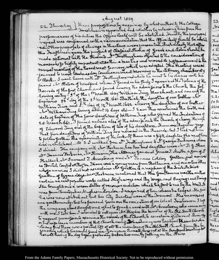View full, authoritative transcriptions with page images of the diaries at John Quincy Adams Digital Diary part of the Primary Source Cooperative at the MHS.