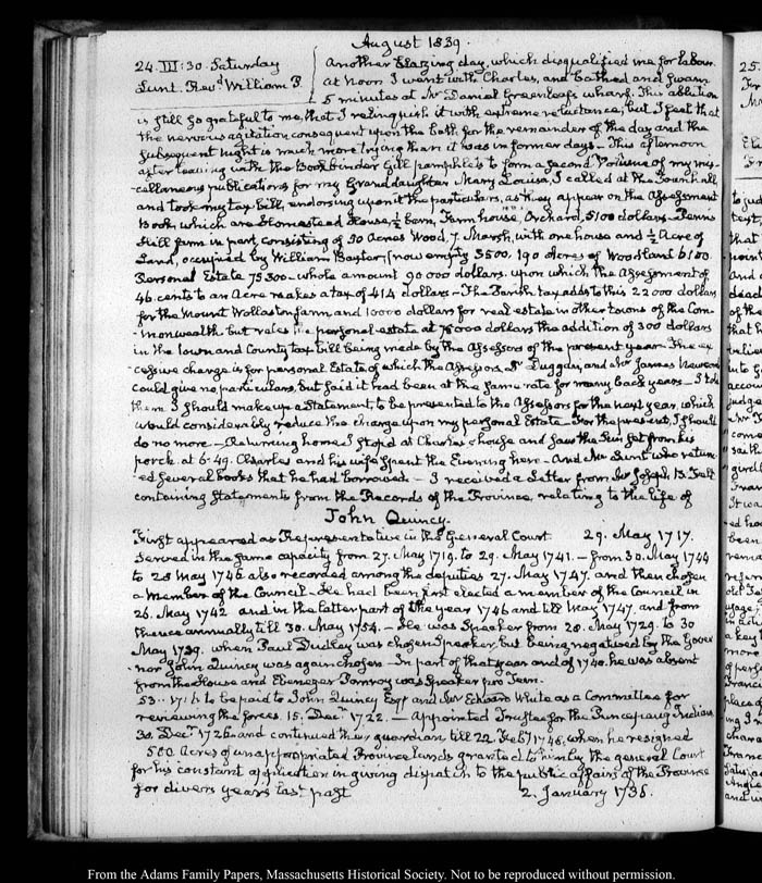 View full, authoritative transcriptions with page images of the diaries at John Quincy Adams Digital Diary part of the Primary Source Cooperative at the MHS.