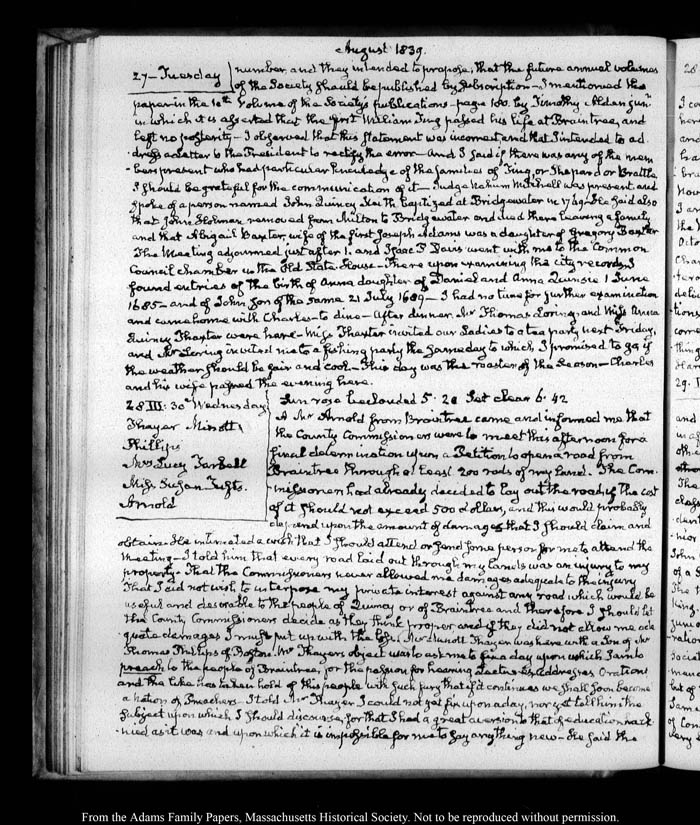 View full, authoritative transcriptions with page images of the diaries at John Quincy Adams Digital Diary part of the Primary Source Cooperative at the MHS.