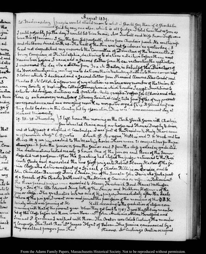 View full, authoritative transcriptions with page images of the diaries at John Quincy Adams Digital Diary part of the Primary Source Cooperative at the MHS.