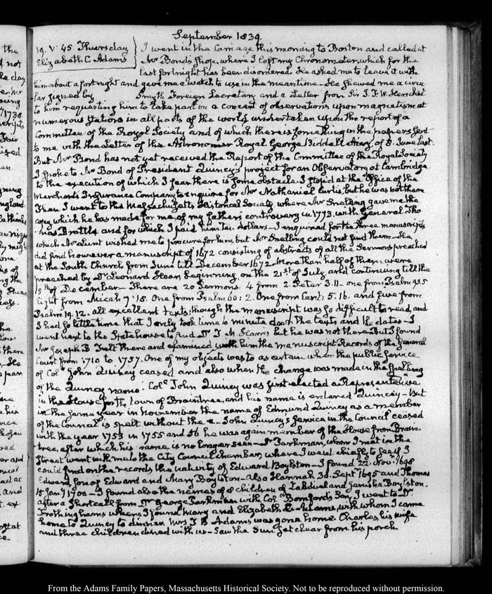 View full, authoritative transcriptions with page images of the diaries at John Quincy Adams Digital Diary part of the Primary Source Cooperative at the MHS.