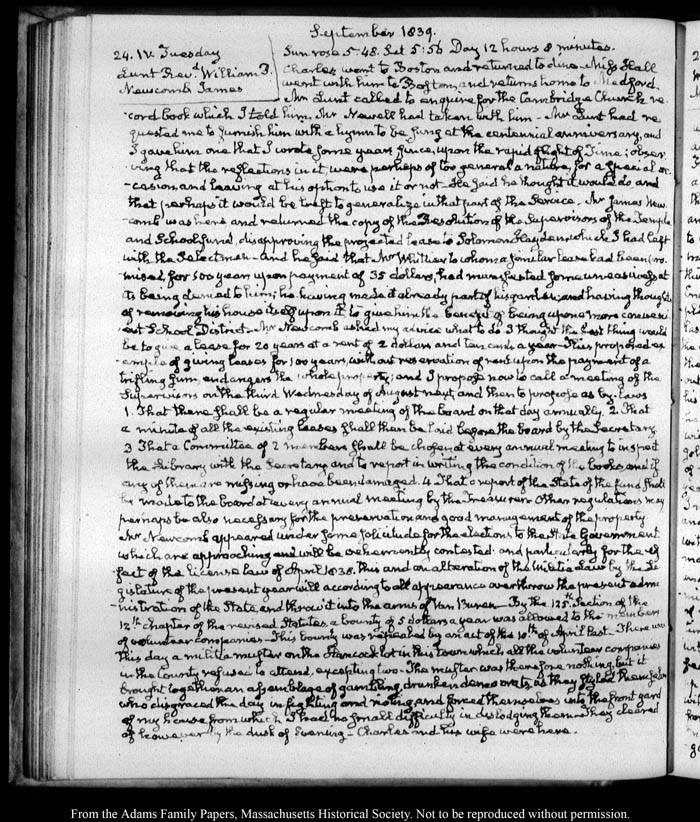 View full, authoritative transcriptions with page images of the diaries at John Quincy Adams Digital Diary part of the Primary Source Cooperative at the MHS.