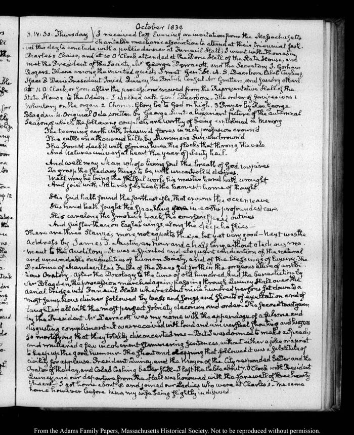 View full, authoritative transcriptions with page images of the diaries at John Quincy Adams Digital Diary part of the Primary Source Cooperative at the MHS.