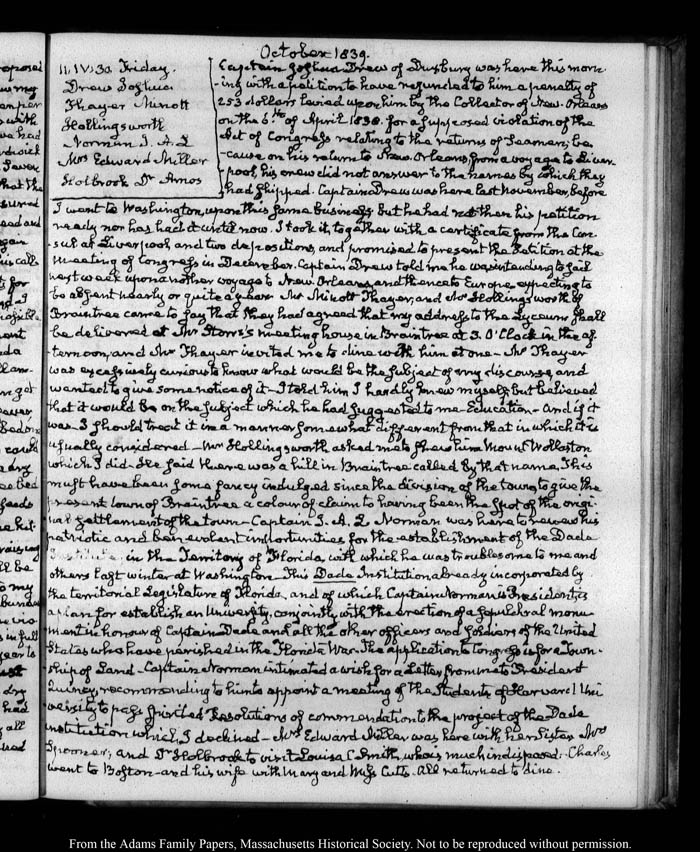 View full, authoritative transcriptions with page images of the diaries at John Quincy Adams Digital Diary part of the Primary Source Cooperative at the MHS.