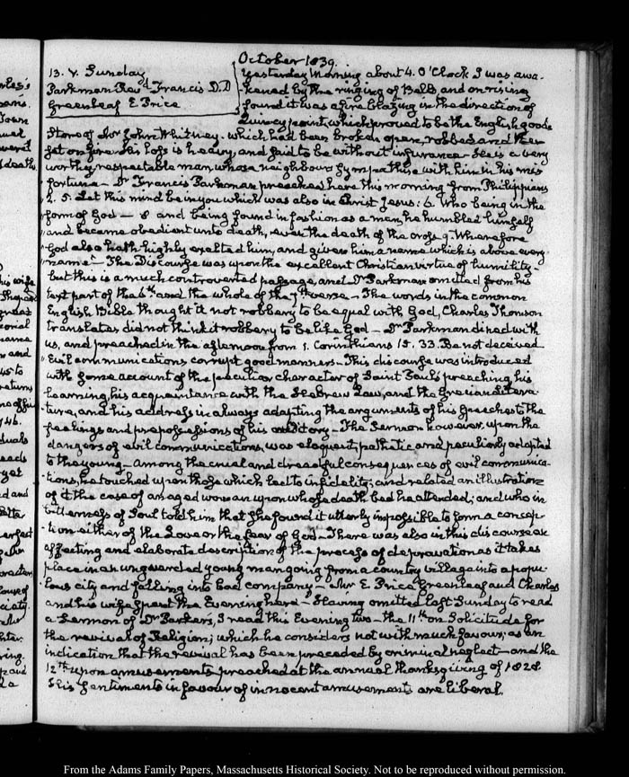 View full, authoritative transcriptions with page images of the diaries at John Quincy Adams Digital Diary part of the Primary Source Cooperative at the MHS.