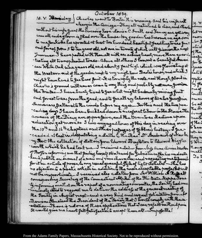 View full, authoritative transcriptions with page images of the diaries at John Quincy Adams Digital Diary part of the Primary Source Cooperative at the MHS.