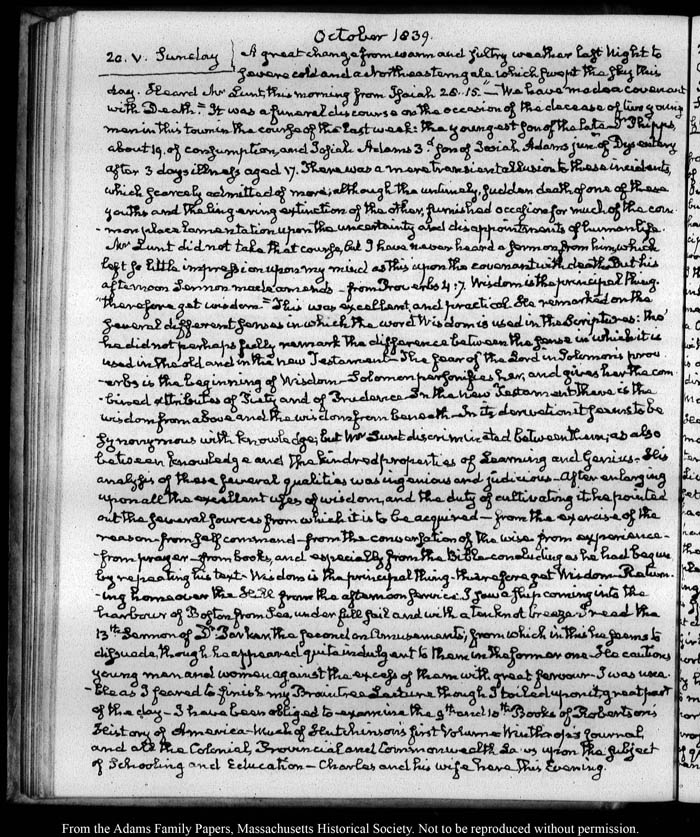 View full, authoritative transcriptions with page images of the diaries at John Quincy Adams Digital Diary part of the Primary Source Cooperative at the MHS.