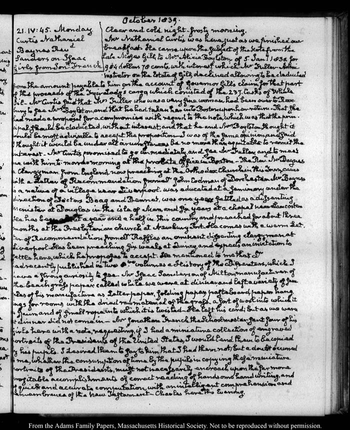View full, authoritative transcriptions with page images of the diaries at John Quincy Adams Digital Diary part of the Primary Source Cooperative at the MHS.