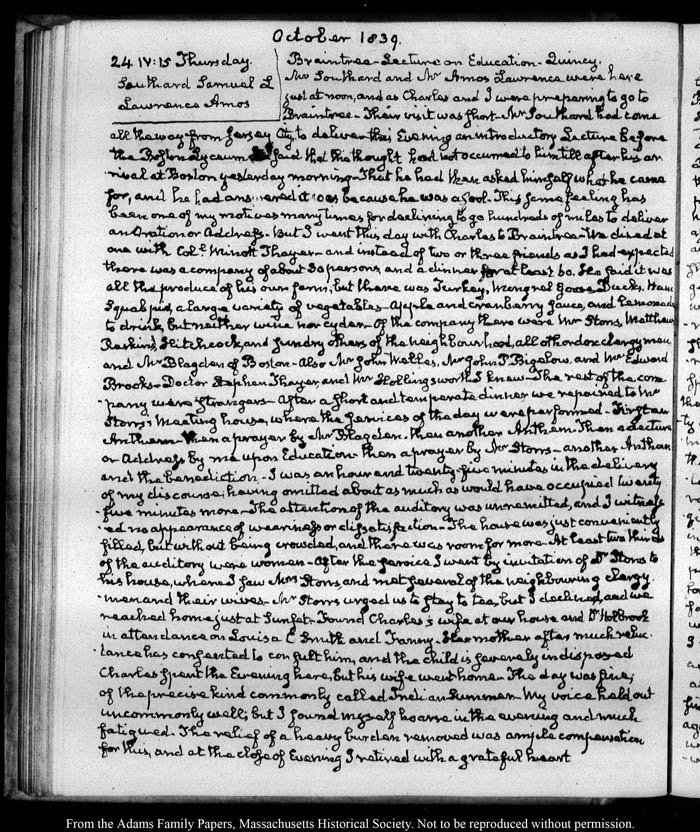 View full, authoritative transcriptions with page images of the diaries at John Quincy Adams Digital Diary part of the Primary Source Cooperative at the MHS.