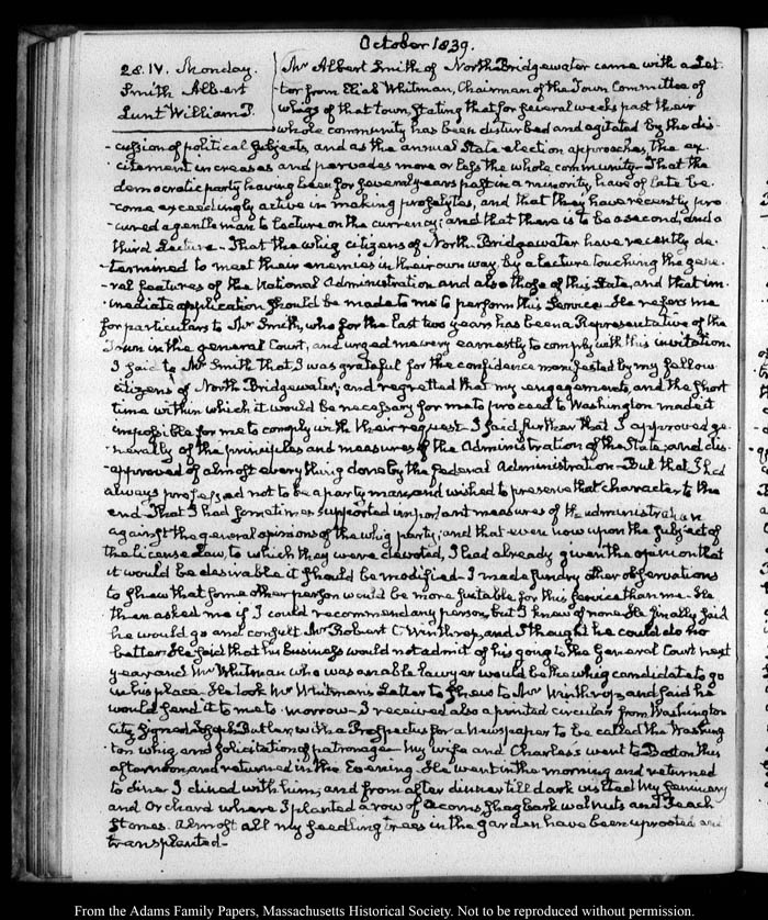 View full, authoritative transcriptions with page images of the diaries at John Quincy Adams Digital Diary part of the Primary Source Cooperative at the MHS.