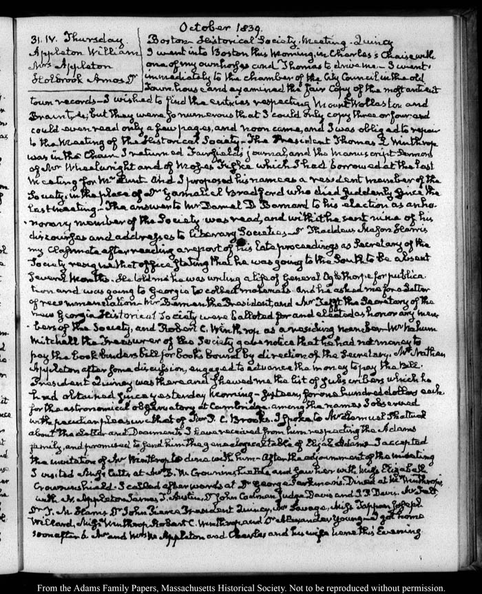 View full, authoritative transcriptions with page images of the diaries at John Quincy Adams Digital Diary part of the Primary Source Cooperative at the MHS.