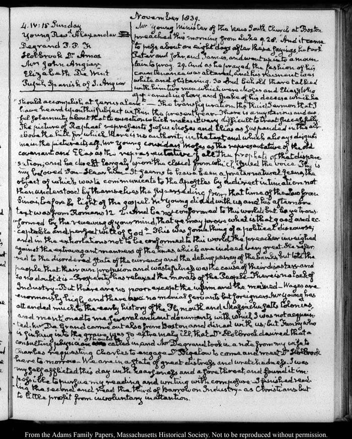 View full, authoritative transcriptions with page images of the diaries at John Quincy Adams Digital Diary part of the Primary Source Cooperative at the MHS.