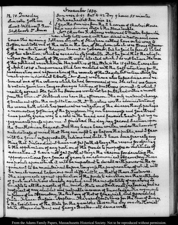 View full, authoritative transcriptions with page images of the diaries at John Quincy Adams Digital Diary part of the Primary Source Cooperative at the MHS.