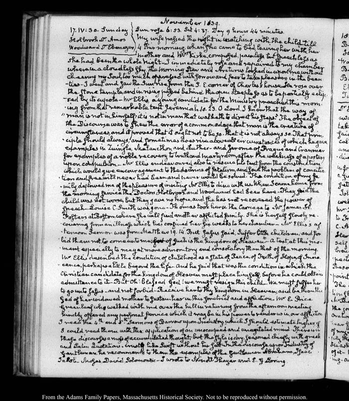 View full, authoritative transcriptions with page images of the diaries at John Quincy Adams Digital Diary part of the Primary Source Cooperative at the MHS.
