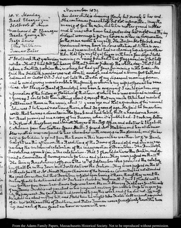 View full, authoritative transcriptions with page images of the diaries at John Quincy Adams Digital Diary part of the Primary Source Cooperative at the MHS.