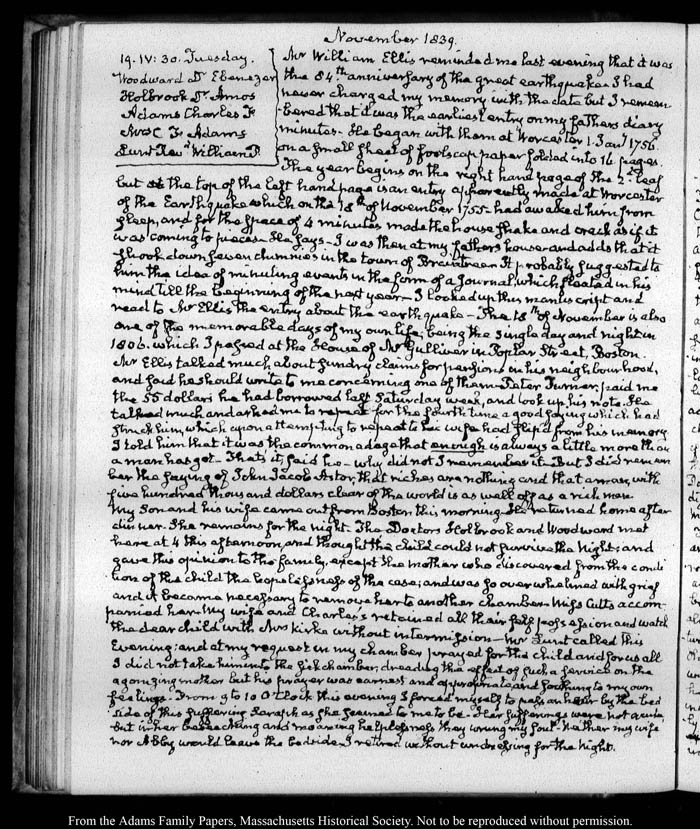 View full, authoritative transcriptions with page images of the diaries at John Quincy Adams Digital Diary part of the Primary Source Cooperative at the MHS.