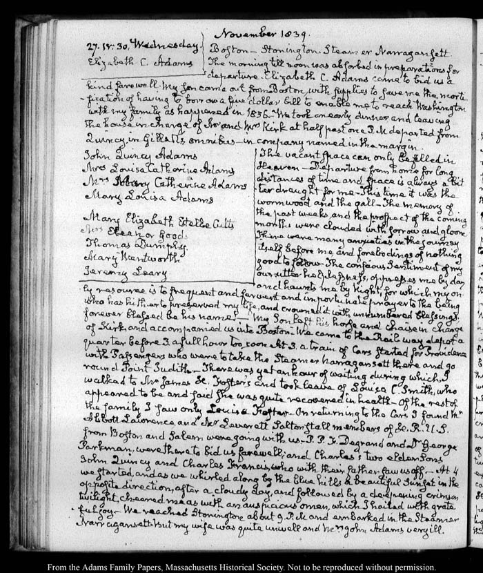 View full, authoritative transcriptions with page images of the diaries at John Quincy Adams Digital Diary part of the Primary Source Cooperative at the MHS.