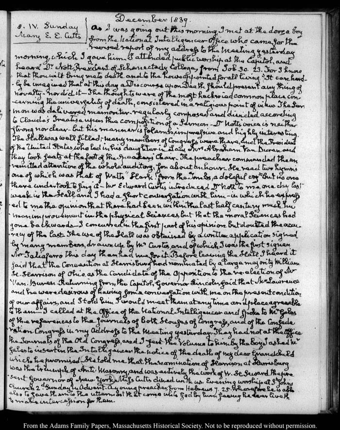 View full, authoritative transcriptions with page images of the diaries at John Quincy Adams Digital Diary part of the Primary Source Cooperative at the MHS.