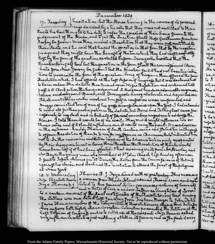 View full, authoritative transcriptions with page images of the diaries at John Quincy Adams Digital Diary part of the Primary Source Cooperative at the MHS.