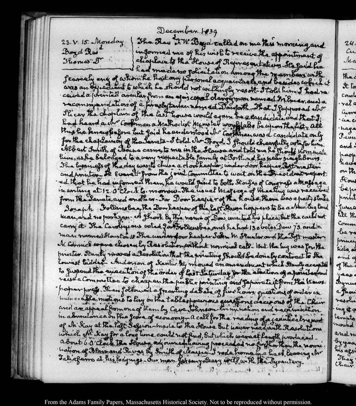 View full, authoritative transcriptions with page images of the diaries at John Quincy Adams Digital Diary part of the Primary Source Cooperative at the MHS.