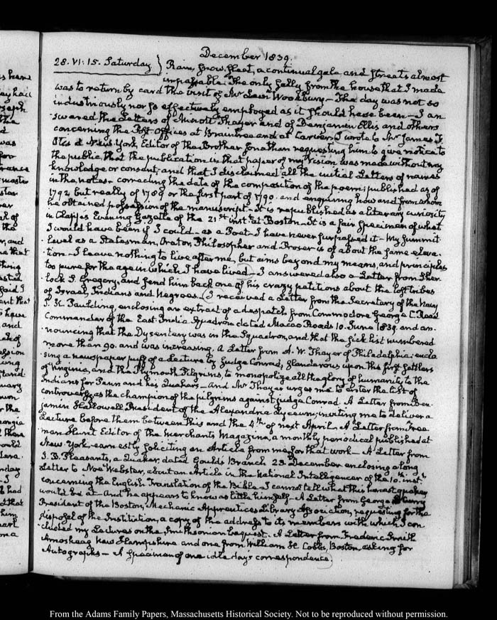 View full, authoritative transcriptions with page images of the diaries at John Quincy Adams Digital Diary part of the Primary Source Cooperative at the MHS.