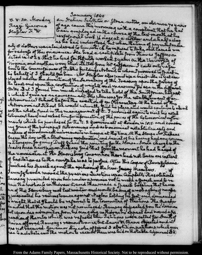 This is our legacy JQA diaries website and allows researchers to view the physical diaries page-by-page.
