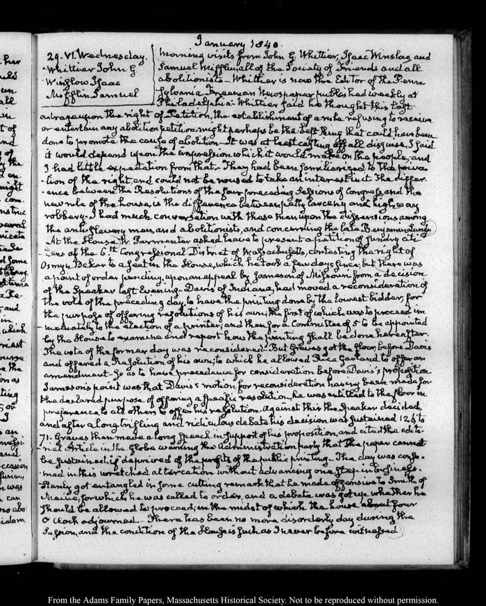 This is our legacy JQA diaries website and allows researchers to view the physical diaries page-by-page.