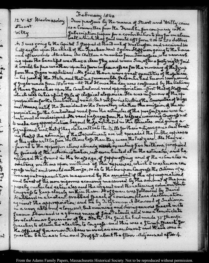 View full, authoritative transcriptions with page images of the diaries at John Quincy Adams Digital Diary part of the Primary Source Cooperative at the MHS.
